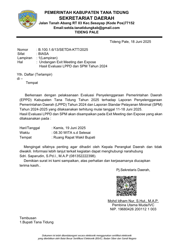 Undangan Exit Meeting dan Expose Hasil Evaluasi LPPD dan SPM Tahun . . .