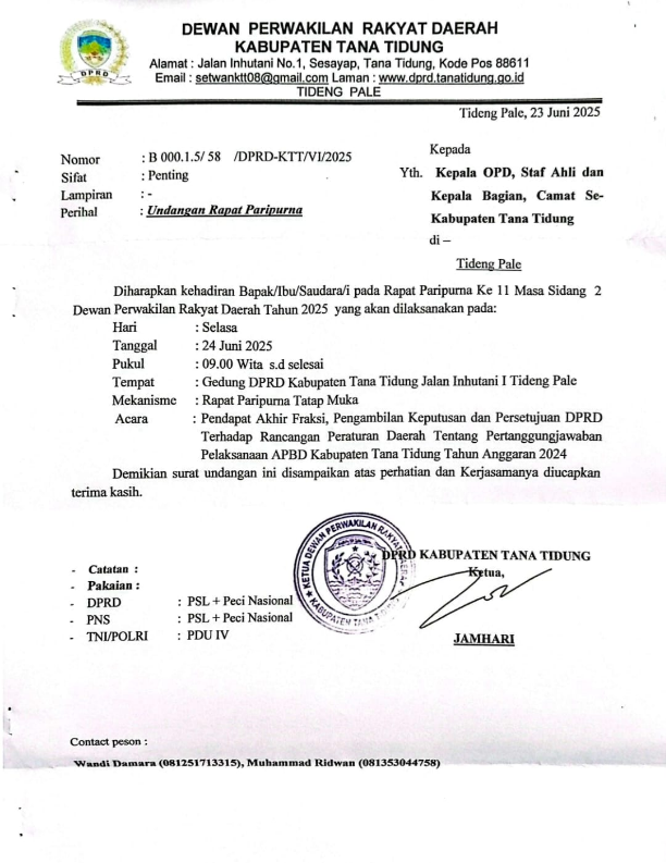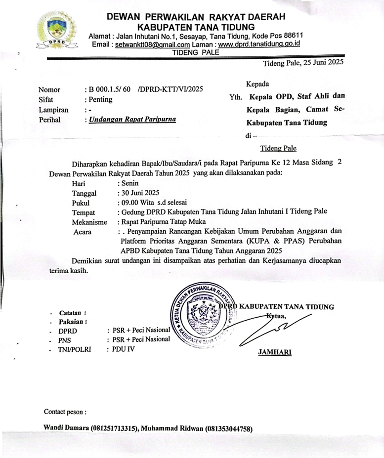 Undangan Menghadiri Rapat Paripurna Ke 11 Masa Sidang 2 DPRD Tahun . . .