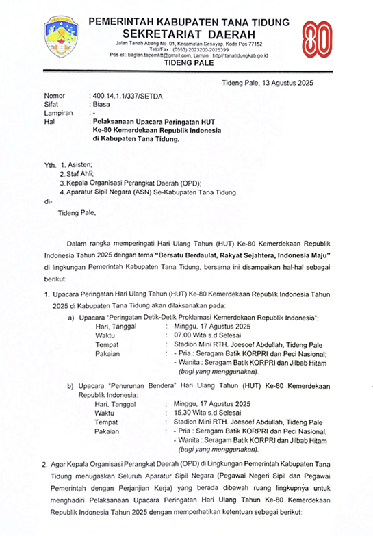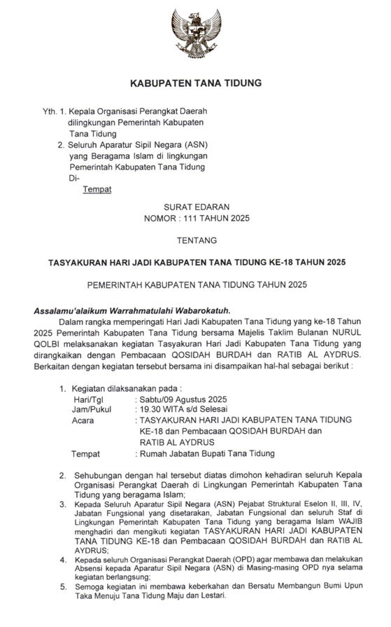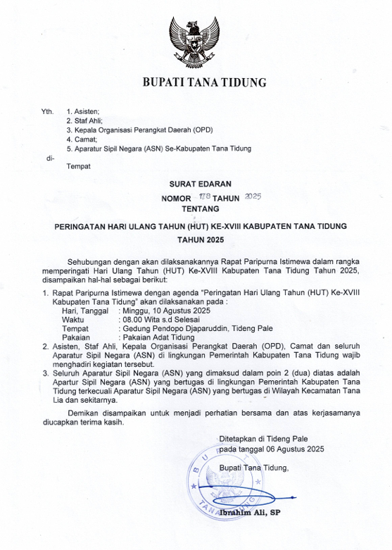 Surat Edaran Menghadiri Peringatan HUT Ke-18 Kabupaten Tana . . .