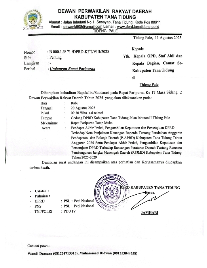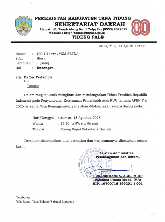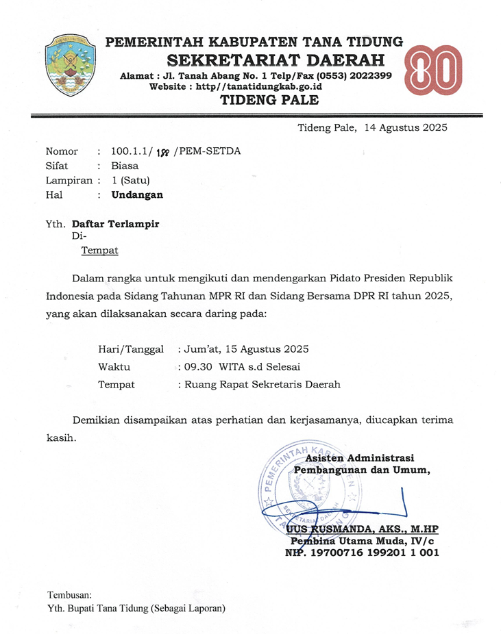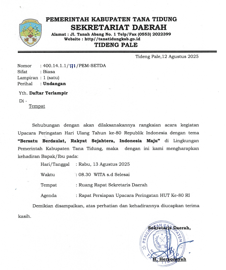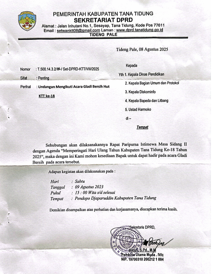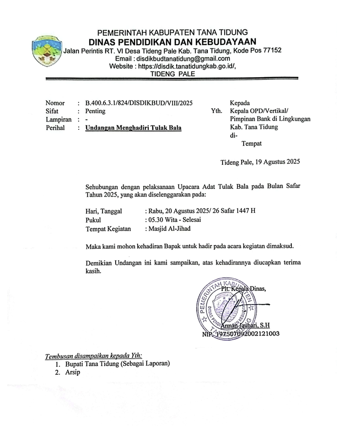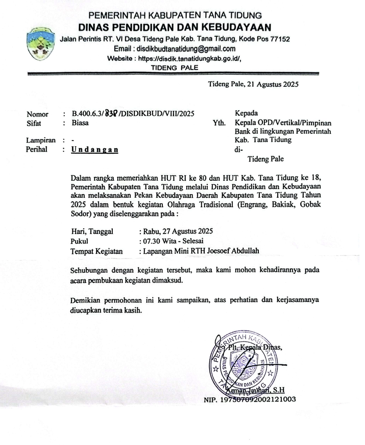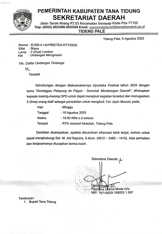 Undangan menghadiri Pekan Kebudayaan Daerah Kabupaten Tana Tidung Tahun . . .
