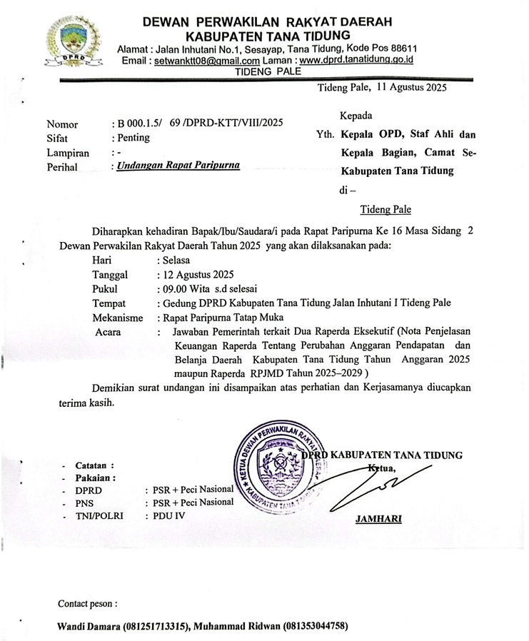 Undangan Mengikuti dan Mendengarkan Pidato Presiden RI pada Penyampaian Keterangan Pemerintah atas RUU tentang APBN T.A . . .